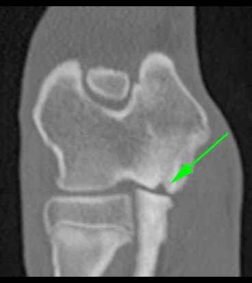 En belirgin belirtiler arasında topallama ve bölgedeki şişlik, sertlik ve sıcaklık vardır. Hasta oyun oynamak istemez, dirsek eklemine dokunulduğunda ağrılıdır. Bu tür durumlar başka dirsek hastalıklarından da kaynaklanabilir. Bu sebeple ayırıcı tanıyı koyabilmesi için alanında uzman bir veteriner ortopedi uzmanına köpeğinizi zaman geçirmeden götürmeniz gerekir. Teşhiste çabuk davranmak önelidir çünkü OCD’si olan her köpekte aynı anda osteoartrit gelişmeye başlar. Osteoartritin kesin bir tedavisi olmadığı için erken teşhis ile yönetilebilmesi daha uygun hale gelir.