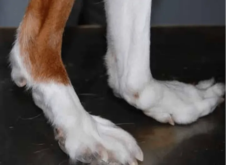 Karpal hiperekstansiyon daha çok büyük köpekleri etkileyen bir hastalık olsa da küçük ırk köpeklerde de görülebilir. Ön ayak bileklerinde şişlik, şekil bozukluğu ve patinin tamamının yere bastığı aşırı bir açılanma ile karakterizedir.
